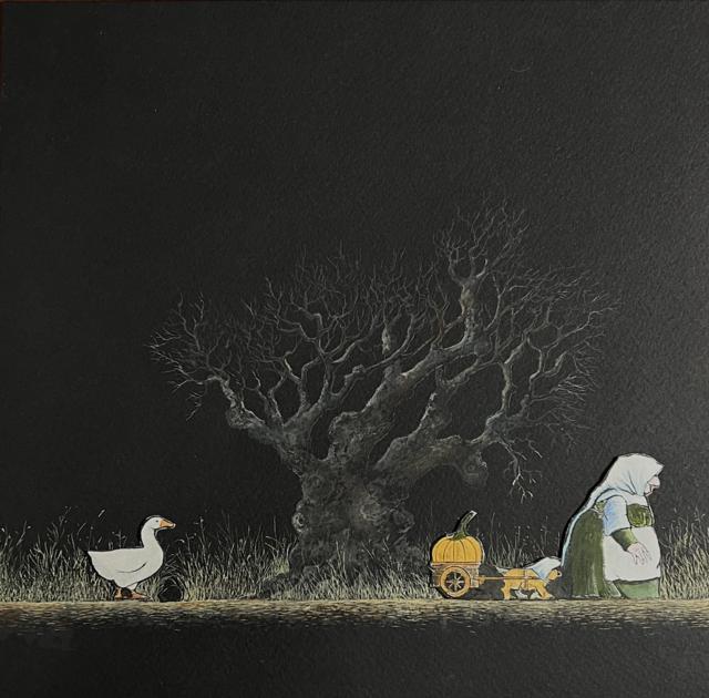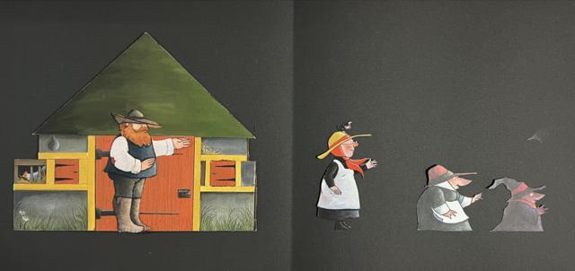 The idea for this book began many years ago. Once I finished the last remaining Gossie & Friends book I could concentrate on this idea. It all began as an experiment working on black paper with cut-out figures. I was amazed at how beautifully the collage technique worked. So I began more experimentation with various existing cut-out figures I had made over the years to see how compositions and layouts might work as a book.