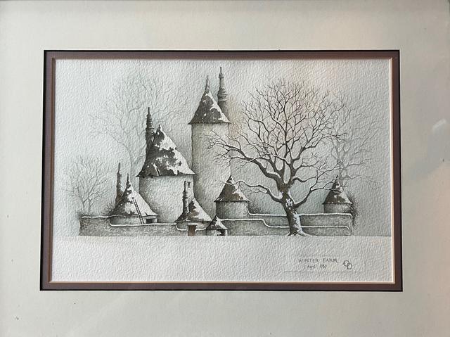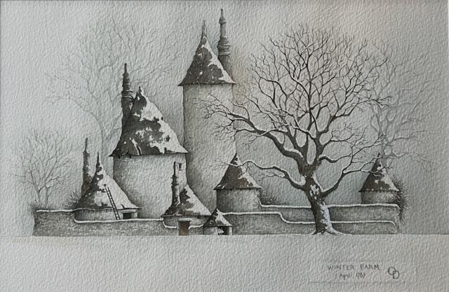 This painting is titled Winter Farm. It hangs in the upstairs hallway here at Henwoodie. It is one of my favorite paintings that I have ever done. In real life the painting is NOT this dark.