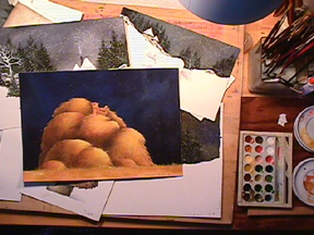 Once I have the layouts and the dummy for a book worked out I will proceed to doing colour studies. My editor and book designer like to see just how the finished art is going to look..