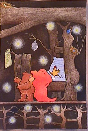 Many years ago I created a series of notecards that were illustrated front and back as well as on the inside. This card is a tri-fold card that has cut-out figures, animals, and woven paper pockets to store them all in. I love making these cards and may design a series that will be produced commercially.