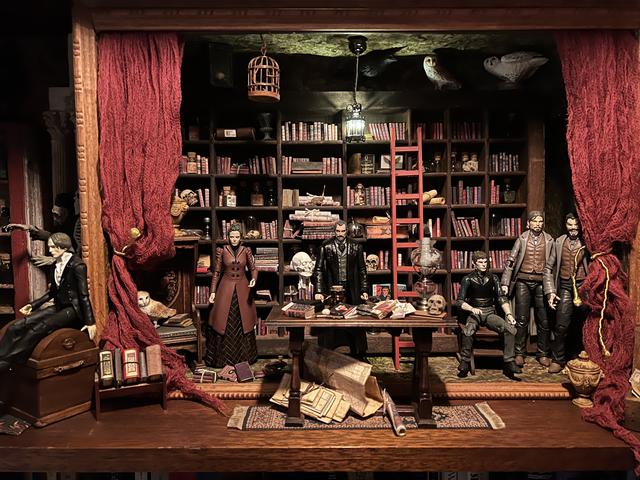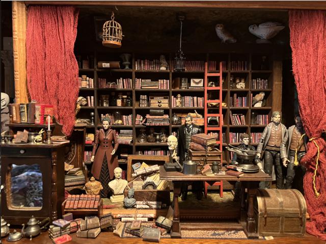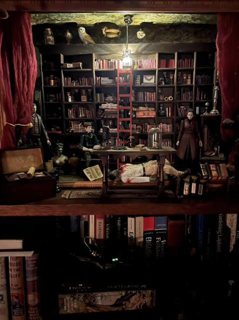 Here is an example as to what I mean by an expanded library. More furnishings have been added as well as figures from Penny Dreadful.