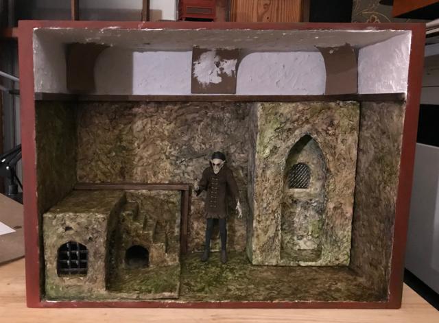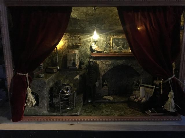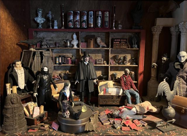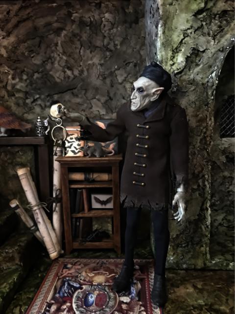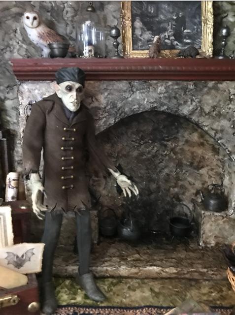 Ever since I was a young boy I have always been fascinated and obsessed with Old World Vampyres. At the beginning of COVID I began buying inexpensive plastic vampyres which quickly evolved into buying the really expensive 1:6 scale vampyres: Dracula, Bela Lugosi, Christopher Lee, Barnabas Collins/Jonathan Frid and, of course, Nosferatu. I bought vampyres in various sizes and began collecting or making their accessories. The photos show the progression from the very first cheap vampyre to the more finished Vampyre Room Boxes. I also began working with artists and craftsmen around the world who had specialty construction skills that I do not have.