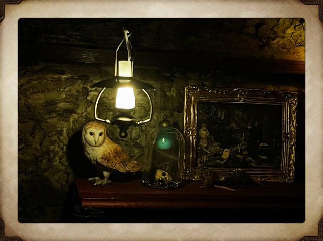 The Red Vampyre Room now resides in one of the bookcases in our bedroom. I love looking at and fiddling with the pieces every day. Since this photo was taken there has been quite a few more accessories added to the scene.